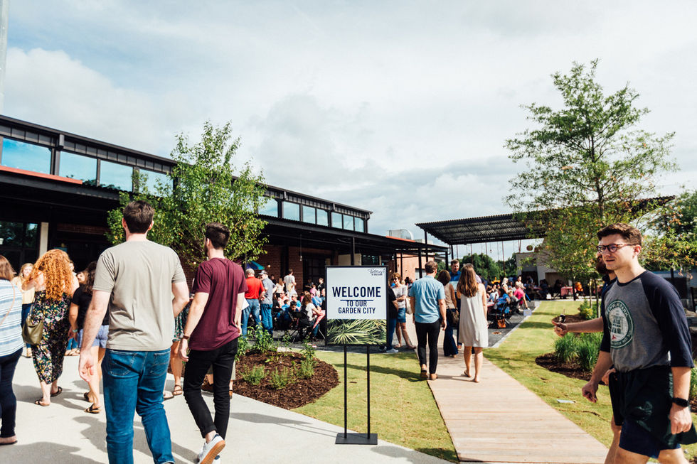 Leveraging deep knowledge of Atlanta zoning codes, a variance was acquired to drastically reduce required onsite parking, freeing up space for a new landscaped courtyard. To enable the warehouse building to function as an auditorium, KUA proposed that the center section of the roof be removed and raised, introducing natural light into the deep floorplate and enhancing interior sight lines. Around the central event space are accessory rooms, including meeting spaces, a recording studio, offices, and a small café area. Large new garage doors open onto a deep covered patio, extending the interior spaces seamlessly into the courtyard beyond. Late in the project the Atlanta Beltline announced the purchase of an adjacent parcel, bringing the heavily trafficked pedestrian and cycling path right past the church’s front door. Quick adjustments to the site design in coordination with the PATH Foundation were made to provide enhanced integration with the path. The dramatic transformation of the property was made possible by KUA’s detailed understanding of zoning codes and adaptive reuse techniques.